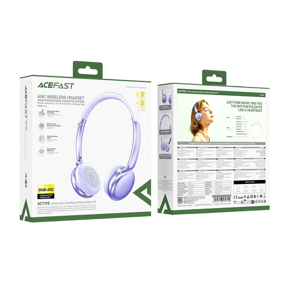 Kod produktu: 1033704Słuchawki Acefast H8 łączą wysoką jakość dźwięku z aktywną redukcją szumów ANC i wyjątkowym komfortem użytkowania. Dzięki lekkiej konstrukcji, regulowanemu stalowemu pałąkowi i miękkim nausznikom z pianki memory, model H8 idealnie sprawdza się zarówno w pracy, jak i podczas podróży. Funkcja aktywnego tłumienia hałasu pozwala zanurzyć się w muzyce, a pojemny akumulator zapewnia do 60 godzin odtwarzania. Stylowy fioletowy kolor i pokrętło sterujące sprawiają, że to nowoczesne słuchawki z klasą.Cechy produktu: