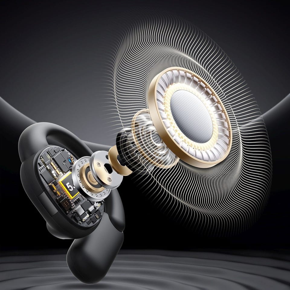 - - Konstrukcja Open-Ear: Pozwala zachować pełną świadomość otoczenia podczas słuchania muzyki – bezpieczniejsze treningi i aktywności na świeżym powietrzu,