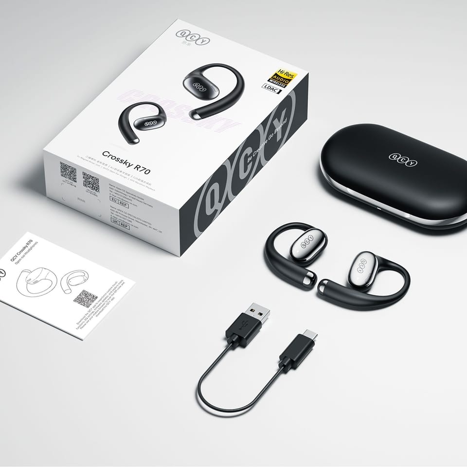 Kod produktu: 1032311Słuchawki QCY Crossky R70 to model typu OWS z otwartą konstrukcją i elastycznymi zausznikami, zaprojektowany z myślą o komforcie i bezpieczeństwie podczas codziennych aktywności. Otwarta budowa pozwala zachować stały kontakt z otoczeniem, co zwiększa pewność użytkowania na ulicy i podczas treningu. Obsługa kodeka LDAC oraz certyfikat Hi-Res Audio zapewniają szczegółowe i dynamiczne brzmienie. Długi czas pracy oraz odporność IPX5 sprawiają, że słuchawki sprawdzają się także w trudniejszych warunkach. Całość uzupełnia dedykowana aplikacja QCY, która pozwala dopasować działanie słuchawek do własnych preferencji.Cechy produktu: