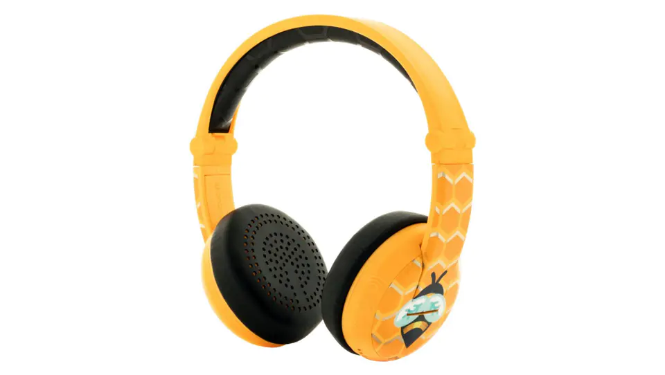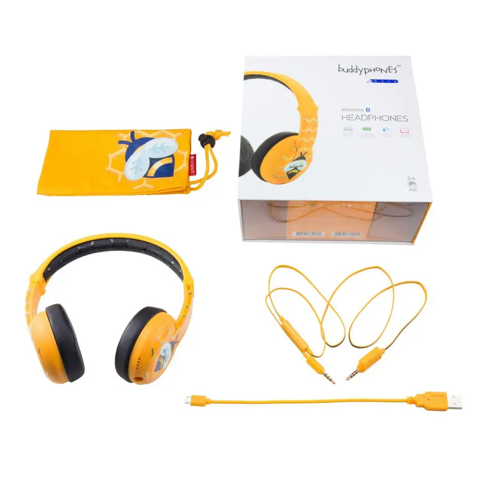 BuddyPhones Wave Bee, BT-BP-WV-BEE Bezprzewodowe słuchawki Bluetooth dla Dzieci 3+ z ograniczeniem głośności (75/85/94dB), z mikrofonem, z rozdzielaczem BuddyJack, wodoodporne