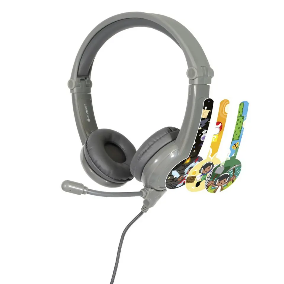 BuddyPhones Galaxy Cool Gray, BP-GALAXY-GREY Gamingowe słuchawki dla Dzieci, z ograniczeniem głośności (85dB), z mikrofonem oraz rozdzielaczem Audio BuddyJack