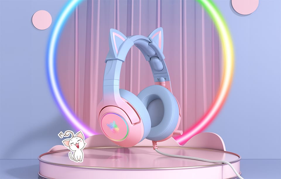 Uwielbiasz grać w gry i rozmawiać ze znajomymi z serwera? A może uwielbiasz słuchać muzyki spacerując po mieście i chcesz się wyróżniać? Albo po prostu lubisz urocze rzeczy, ale róż to dla Ciebie zbyt wiele? Tak czy inaczej słuchawki ONIKUMA K9 świetny wybór! Stylowy design, świecące elementy i doczepiane kocie uszka nie tylko wyróżnią Cię z tłumu, ale także sprawią Ci dziecięcą radość! Wyposażone w doskonałe głośniki oferujące realistyczny, świetnej jakości dźwięk, konstrukcję wykonaną z solidnych materiałów oraz wygodne poduszeczki ONIKUMA K9 to jednak nie tylko wygląd, ale także jakość!