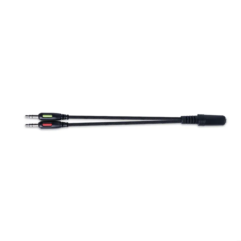 - Przejściówka z 4-polowego min Jack 3.5mm na 2x 3-polowy mini-Jack 3.5mm- Komplet dodatkowych poduszek
