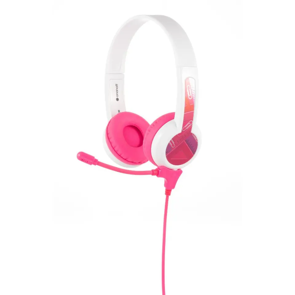Słuchawki dziecięce BuddyPhones StudyBuddy BP-SB-PINK-01 Słuchawki dla dzieci 3+ z mikrofonem do nauki zdalnej, z ograniczeniem głośności do 85dB i rozdzielaczem audio ByddyJack