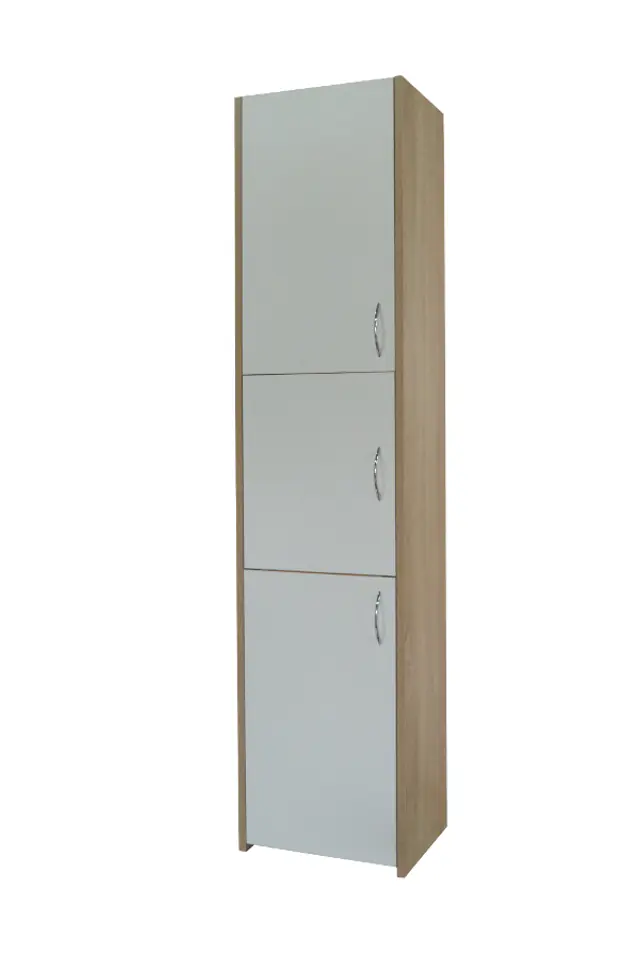 SZAFKA ŁAZIENKOWAADAŚ 3D - 40cm SZAFKA ŁAZIENKOWA ADAŚ 2D w kolorze Dąb Sonoma + front białyWymiary:wysokość: 170 cmszerokość: 40 cmgłębokość: 30 cm Szafki wykonane z płyty laminowanej 16 mm, obrzeża oklejone PCV - odpornym na wilgoć Metalowy uchwyt w kolorze srebrnym Plecy wykonane z płyty HDF 3mmŁaczenie płyt odbywa się za pomocą niewidocznych łączy mimośrodowych (nie konfirmaty) Szafka jest PRAWO/LEWA - sam podczas montażu wybierasz na którą stronę majasię otwierać drzwiczki !! Paczki wysyłamy kurierem do samodzielnego montażu, wraz z szczegółowa instrukcja