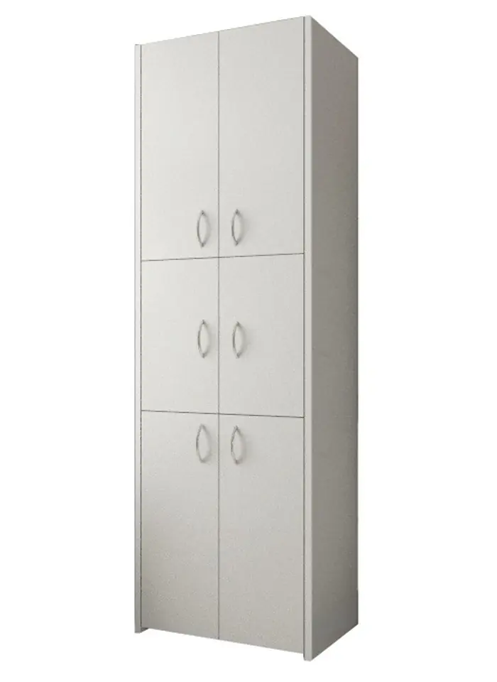 SZAFKA ŁAZIENKOWA ADAŚ 6D - 56cm BIAŁA Wymiary:wysokość: 170 cmszerokość: 56 cmgłębokość: 30 cmSzafka posiada 6 półek, 3 półki posiadają regulacje wysokości. Szafki wykonane z Polskiej płyty laminowanej 16 mmObrzeża oklejone PCV - odpornym na wilgoć Metalowy uchwyt w kolorze srebrnym Plecy wykonane z płyty HDF 3mmRegulacja wysokości półekŁączenie elementów odbywa się za pomocą niewidocznych łączy mimośrodowych (nie konfirmaty) Paczki wysyłamy kurierem do samodzielnego montażu, wraz z szczegółowa instrukcja