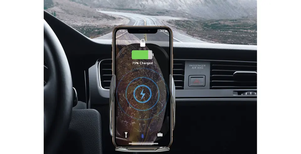 Dzięki technologii indukcyjnej telefon włożony do uchwytu jest ładowany i to bez użycia kabla do telefonu. Czujnik podczerwieni automatycznie otwiera zaciski, co pozwala na swobodne umieszczenie telefonu, następnie uchwyt automatycznie dostosowuje się do wymiarów smartfona. Pasuje do większości modeli dostępnych na rynku.