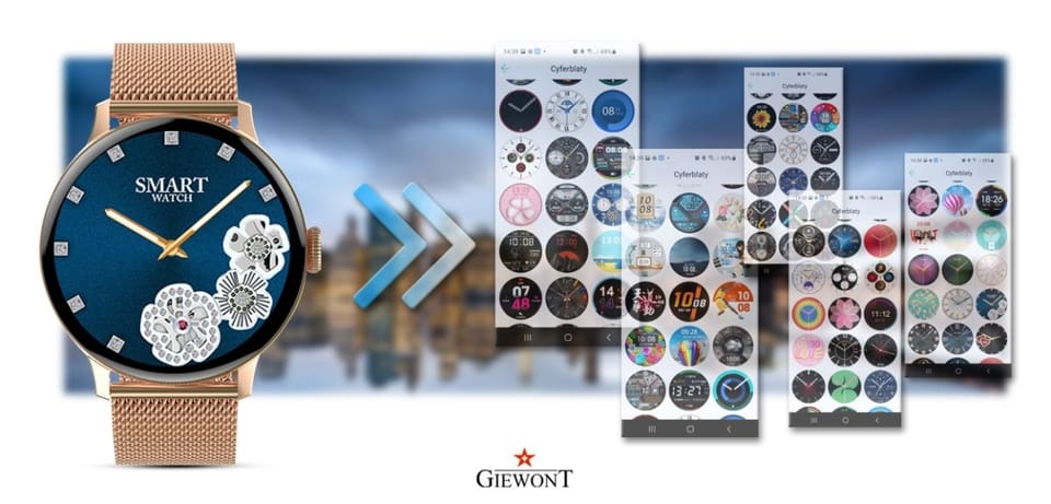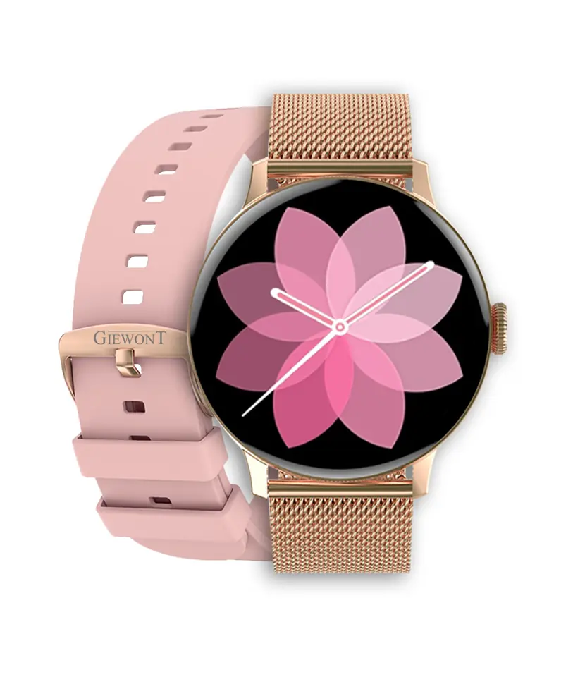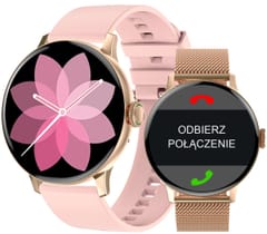 Smartwatch Damski GIEWONT GW330-1 to nowoczesny i stylowy dodatek, który doskonale łączy funkcjonalność z eleganckim, kobiecym designem. Został zaprojektowany tak, aby podkreślać indywidualny styl użytkowniczki, jednocześnie oferując praktyczne rozwiązania na każdy dzień. Smukła koperta i subtelne detale sprawiają, że zegarek prezentuje się wyjątkowo szykownie, a możliwość wymiany paska pozwala jeszcze lepiej dopasować go do stroju i okazji. Urządzenie oferuje szeroki zakres funkcji, które usprawniają codzienność. Można z niego rozmawiać, odczytu wiadomości i powiadomień z telefonu, przez kontrolę muzyki, aż po wygodne zdalne sterowanie aparatem. Wszystko to dostępne jest na wyraźnym, kolorowym ekranie, który zapewnia komfort obsługi niezależnie od warunków. GIEWONT GW330-1 wspiera również dbanie o zdrowie i dobre samopoczucie. Monitoruje tętno w czasie rzeczywistym, analizuje jakość snu oraz zlicza kroki i spalone kalorie, dzięki czemu możesz na bieżąco śledzić swoje postępy. Wbudowane tryby sportowe motywują do aktywności i pomagają świadomie planować treningi. Smartwatch jest idealnym narzędziem zarówno dla osób prowadzących intensywny, aktywny tryb życia, jak i tych, które chcą zadbać o regularny ruch na co dzień. Wydajna bateria zapewnia wielodniowe działanie bez konieczności częstego ładowania, co czyni GW330-1 niezwykle praktycznym urządzeniem do pracy, domu i podróży. To smartwatch, który jest nie tylko piękny, ale także inteligentny – niezawodnie wspiera Cię w organizacji dnia, dba o Twoje zdrowie i dodaje stylu każdej stylizacji. Jeśli szukasz zegarka, który potrafi więcej i wyróżnia się elegancją, GIEWONT GW330-1 będzie strzałem w dziesiątkę.