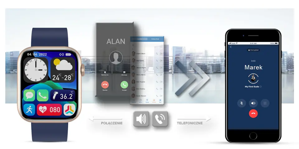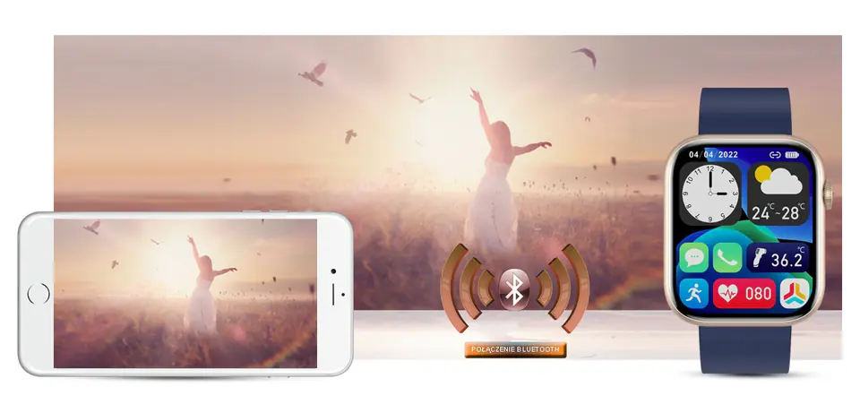 Ten smartwatch możesz połączyć ze swoim Smartfonem. Kompatybilność z systemem Android 4.4 i nowszy oraz iOS 9.0 i nowszy. Oznacza to, że smartwatch połączy się ze wszystkimi telefonami na systemie ANDROID i iOS.