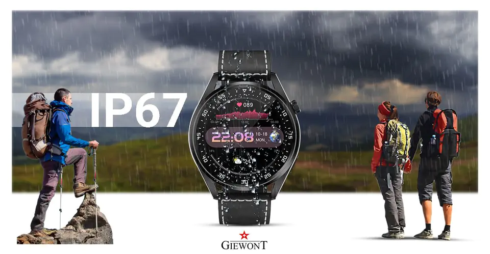 SMARTWATCH GIEWONT GW450To niezwykle elegancki smartwatch na bransolecie z dodatkowym paskiem silikonowy, lub skórzanym z silikonowym podbiciem, który będzie Ci towarzyszył podczas codziennych aktywności. Jego lekka obudowa sprawdzi się znakomicie podczas jazdy na rowerze, biegania i uprawiania innych sportów, jakie umożliwia ten smartwatch. Z tym smartwatchem możesz w pełni cieszyć się z każdego ruchu - Giewont GW450 pozwoli Ci zaplanować i kontrolować czas, dystans, spalanie kalorii i efekt treningu. Podczas aktywności lub relaksu, możesz słuchać i sterować muzyką.Z tym smartwatchem możesz wykonywać i odbierać połączenia telefoniczne, nie przegapisz również to, co ważne. Wiadomości z Facebook, Twitter, Whatsapp, Skype itp. wyświetlane są na ekranie w czasie rzeczywistym - wystarczy podnieść rękę, aby wyświetlić wiadomości! Nie musisz się odrywać od aktywności, ten model dotrzyma Ci kroku podczas przygody, która się już rozpoczęła i trwa.Zdrowie każdego człowieka jest bezcenne! Model ten pozwana na wykonywanie i kontrolowanie najważniejszych parametrów zdrowotnych, takich jak ciśnienie krwi, tętno oraz saturację - natlenienie krwi. Podczas gdy zmagamy się ze zdrowiem lub uprawiamy sport, kontrolowanie tych parametrów jest nieocenione.Smartwatch Giewont GW450 posiada klasę wodoszczelności IP67, jest odporny na przypadkowe zalania, zachlapania oraz deszcz. Z tym modelem nie można się kąpać.Dodatkowo Giewont GW450 po podłączeniu z aplikacją wyświetla dane o pogodzie. Dlatego teraz możesz dostosować aktywność do warunków pogodowych i cieszyć się treningiem zarówno w słoneczne jak i deszczowe dni. Niech nic nie stanie Ci na przeszkodzie w realizacji codziennych celów! Giewont GW450 pomaga kontrolować zdrowie i sprawność organizmu - w aplikacji możesz ustawić, co jaki interwał czasowy urządzenie ma przypomnieć o trybie siedzącym i nawodnieniu.Całość dopełnia funkcja robienia zdjęć w twoim telefonie za pomogą smartwatcha, poprzez bezprzewodowe połączenie bluetooth.Uzyskaj harmonię pomiędzy aktywnością a wypoczynkiem! Pomoże Ci w tym takie narzędzie, jak monitor braku aktywności. Jeżeli się zasiedzisz - GW450 przypomni Tobie o dłuższym czasie bez aktywności. Koniec wymówek, Twój nowy smartwatch Giewont wie, że ruch to zdrowie!