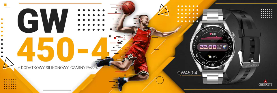 SMARTWATCH GIEWONT GW450To niezwykle elegancki smartwatch na bransolecie z dodatkowym paskiem silikonowy, lub skórzanym z silikonowym podbiciem, który będzie Ci towarzyszył podczas codziennych aktywności. Jego lekka obudowa sprawdzi się znakomicie podczas jazdy na rowerze, biegania i uprawiania innych sportów, jakie umożliwia ten smartwatch. Z tym smartwatchem możesz w pełni cieszyć się z każdego ruchu - Giewont GW450 pozwoli Ci zaplanować i kontrolować czas, dystans, spalanie kalorii i efekt treningu. Podczas aktywności lub relaksu, możesz słuchać i sterować muzyką.Z tym smartwatchem możesz wykonywać i odbierać połączenia telefoniczne, nie przegapisz również to, co ważne. Wiadomości z Facebook, Twitter, Whatsapp, Skype itp. wyświetlane są na ekranie w czasie rzeczywistym - wystarczy podnieść rękę, aby wyświetlić wiadomości! Nie musisz się odrywać od aktywności, ten model dotrzyma Ci kroku podczas przygody, która się już rozpoczęła i trwa.Zdrowie każdego człowieka jest bezcenne! Model ten pozwana na wykonywanie i kontrolowanie najważniejszych parametrów zdrowotnych, takich jak ciśnienie krwi, tętno oraz saturację - natlenienie krwi. Podczas gdy zmagamy się ze zdrowiem lub uprawiamy sport, kontrolowanie tych parametrów jest nieocenione.Smartwatch Giewont GW450 posiada klasę wodoszczelności IP67, jest odporny na przypadkowe zalania, zachlapania oraz deszcz. Z tym modelem nie można się kąpać.Dodatkowo Giewont GW450 po podłączeniu z aplikacją wyświetla dane o pogodzie. Dlatego teraz możesz dostosować aktywność do warunków pogodowych i cieszyć się treningiem zarówno w słoneczne jak i deszczowe dni. Niech nic nie stanie Ci na przeszkodzie w realizacji codziennych celów! Giewont GW450 pomaga kontrolować zdrowie i sprawność organizmu - w aplikacji możesz ustawić, co jaki interwał czasowy urządzenie ma przypomnieć o trybie siedzącym i nawodnieniu.Całość dopełnia funkcja robienia zdjęć w twoim telefonie za pomogą smartwatcha, poprzez bezprzewodowe połączenie bluetooth.Uzyskaj harmonię pomiędzy aktywnością a wypoczynkiem! Pomoże Ci w tym takie narzędzie, jak monitor braku aktywności. Jeżeli się zasiedzisz - GW450 przypomni Tobie o dłuższym czasie bez aktywności. Koniec wymówek, Twój nowy smartwatch Giewont wie, że ruch to zdrowie!
