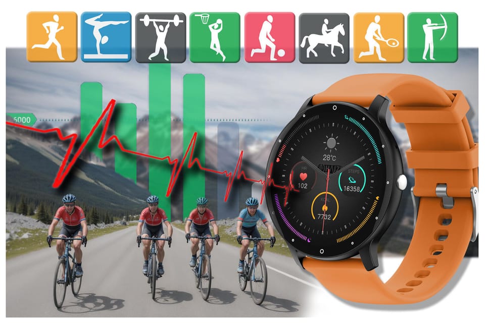 Smartwatch idealny dla aktywnych osób, którzy czas wolny spędzają na uprawianiu sportu i dbanie o zdrowy tryb życia. Ten model posiada wiele różnych trybów sportowych: koszykówka, rower, bieganie, chodzenie, skakanie, piłka nożna i badminton, które pozwolą w łatwy sposób kontrolować trening lub zabawę sportową. Pozwoli ci zaplanować i kontrolować czas, dystans, spalanie kalorii i efekt treningu.