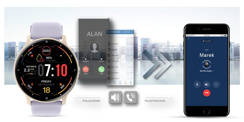 Po sparowaniu smartwatcha z twoim smartfonem, możesz bezproblemowo odbierać i wykonywać połączenia telefoniczne. Wbudowany głośnik oraz mikrofon pozwala rozmawiać bez konieczności wyciągania telefonu komórkowego.
