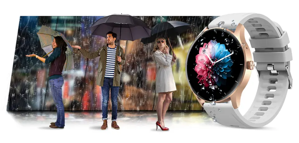Dobry sprzęt powinien nadążać za właścicielem, dlatego smartwatch posiada klasę wodoszczelności IP67. Smartwatch odporny jest na lekkie zachlapania i delikatny kontakt z wodą. Smartwatch jest również odporny na delikatny pył i kurz atmosferyczny. W smartwatchu nie można nurkować, skakać do wody, używać w saunie lub narażać na kontakt z słoną, gorącą lub lodowatą wodą.