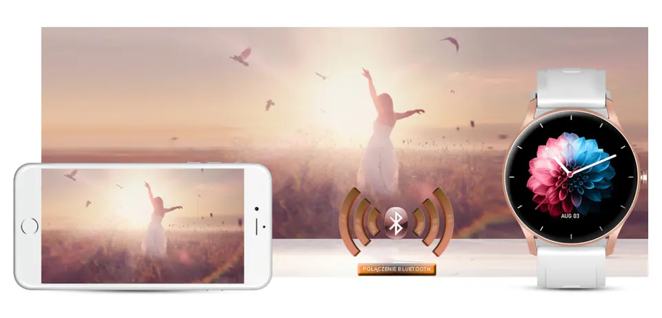 Ten smartwatch możesz połączyć ze swoim Smartfonem. Kompatybilność z systemem Android 5.0 i nowszy oraz iOS 9.0 i nowszy. Oznacza to, że smartwatch połączy się ze wszystkimi telefonami na systemie ANDROID i iOS.