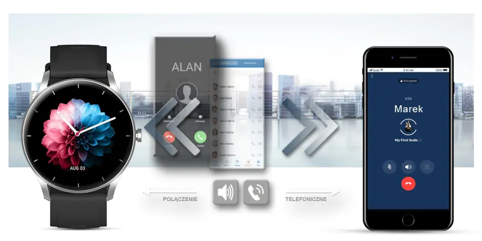 Po sparowaniu smartwatcha z twoim smartfonem, możesz bezproblemowo odbierać i wykonywać połączenia telefoniczne. Wbudowany głośnik oraz mikrofon pozwala rozmawiać bez konieczności wyciągania telefonu komórkowego.