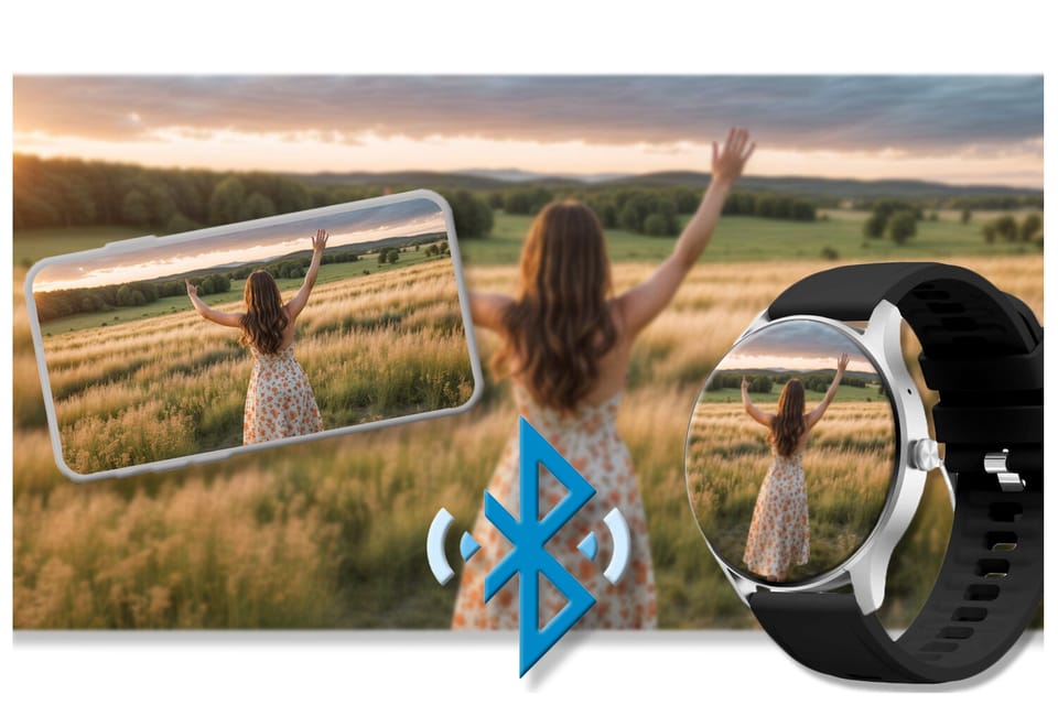 Od teraz możesz bezprzewodowo robić zdjęcia z aparatu za pomocą bezprzewodowego połączenia z zegarkiem. Po prostu uruchamiasz migawkę w obiektywie smartfona i robisz takie zdjęcia, które do tej pory były poza Twoim zasięgiem.