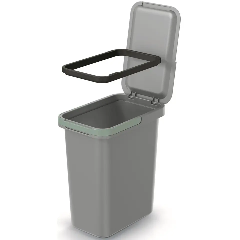 Wyposażony w uchylną pokrywę, która ułatwi wrzucanie śmieci i nie pozwoli na wydobywanie się brzydkich zapachów oraz funkcjonalną ramkę, dzięki której worek jest stabilnie umocowany.