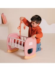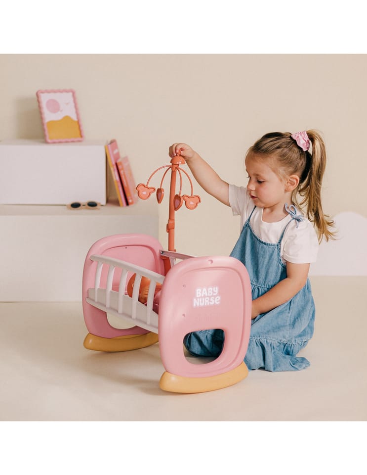 Kołyska Baby Nurse to idealne miejsce do drzemki każdej laleczki! Dzięki pięknie zaprojektowanej konstrukcji w ulubionych kolorach możesz delikatnie kołysać lalkę do snu. Ręcznie obracana karuzela przymocowana do kołyski wprowadza dziecko w świat zabawy i relaksu, pomagając maluchowi zasnąć. Powierzchnię kołyski łatwo utrzymać w czystości – wystarczy wilgotna szmatka. Produkt został wyprodukowany we Francji, w 63% z materiałów z recyklingu, co łączy zabawę z edukacją ekologiczną.
