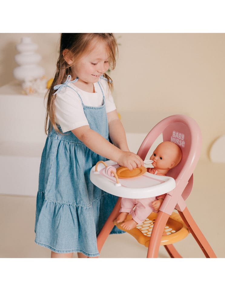 Każda mała dziewczynka marzy o tym, by opiekować się swoją lalką jak prawdziwa mama! Baby Nurse – Krzesełko do karmienia pozwala na zabawę w codzienną opiekę, ucząc empatii i odpowiedzialności. Krzesełko wyróżnia się nowoczesnym designem i piękną, dziewczęcą kolorystyką, która zachwyci każdą „małą mamę”. Zabawka posiada praktyczną półeczkę i przymocowaną na stoliczku zabawkę, a w zestawie znajdują się również talerzyk i łyżeczka. Krzesełko jest idealne do lalek do 42 cm, a zabawa rozwija kreatywność, wyobraźnię i pierwsze umiejętności społeczne dziecka.