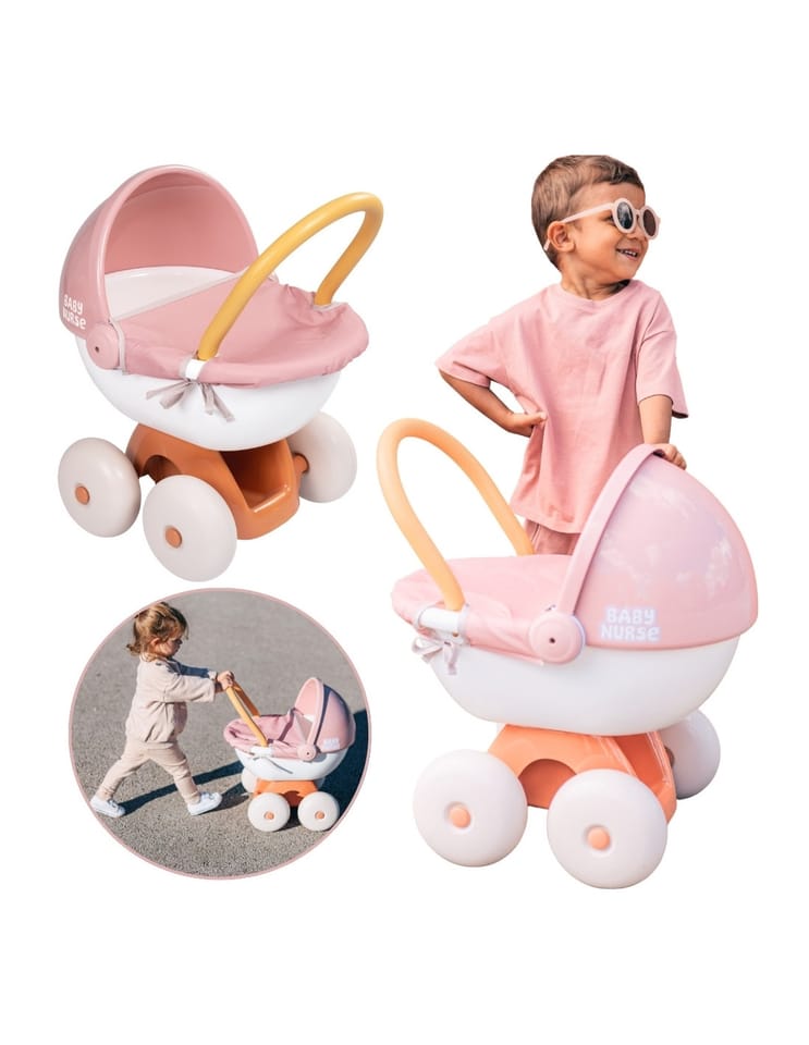 Każda mała dziewczynka marzy o tym, by spacerować z ukochaną laleczką jak prawdziwa mama! Baby Nurse – Wózek głęboki z daszkiem to bezpieczna i stylowa zabawka, która pozwala odgrywać codzienne scenki opieki nad lalką. Plastikowa gondola z materiałowym pokrowcem w pastelowe kropki oraz wygodny daszek zapewniają komfort podczas zabawy. Ciche kółka i ergonomiczny uchwyt umożliwiają łatwe prowadzenie wózka, a pod gondolą znajduje się praktyczny schowek na drobiazgi. Zabawka idealnie nadaje się dla mniejszych dziewczynek i rozwija wyobraźnię oraz empatię w przyjemnej, wartościowej zabawie.