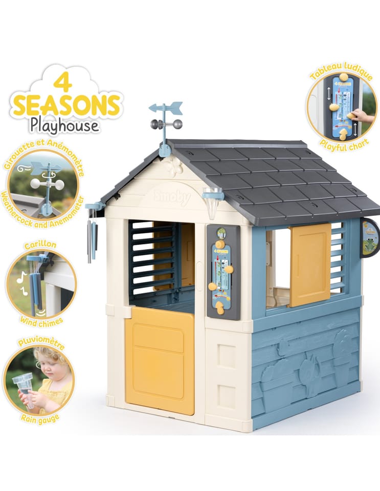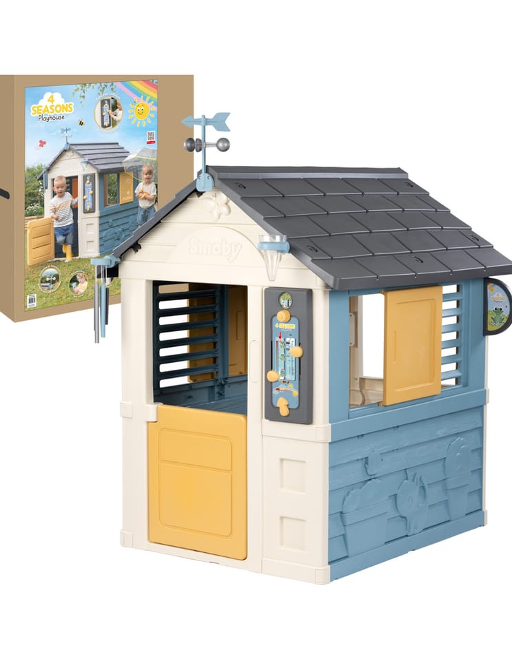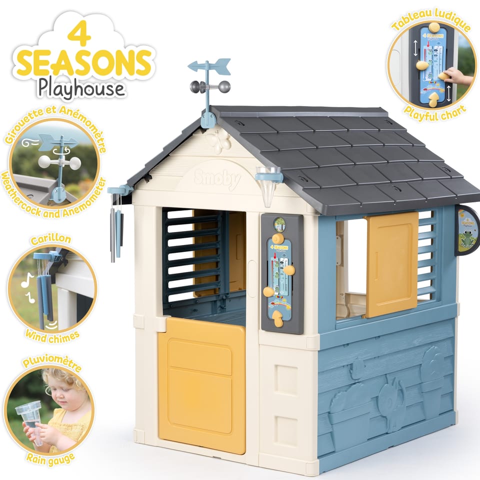 Domek Ogrodowy 4 Pory Roku od firmy Smoby to zabawka dla dzieci od 2 lat, która zachęca do aktywności na świeżym powietrzu. Domek ma kolorowy design i wiele ciekawych elementów, takich jak okna z żaluzjami, drzwi z dzwonkiem i wietrzne dzwonki. Domek jest także wyposażony w akcesoria do nauki pogody, takie jak deszczomierz, wiatrowskaz i panel meteorologiczny. Dzieci mogą obserwować zmiany temperatury, opadów i nasłonecznienia, a także zapisywać swoje odkrycia na panelu. Domek jest wykonany z wysokiej jakości tworzywa sztucznego, które jest odporne na blaknięcie i warunki atmosferyczne. Domek można także połączyć z innymi akcesoriami Smoby, takimi jak piaskownica, kuchnia letnia, podłoga, zraszacz lub donica ogrodowa (sprzedawane osobno). Domek Ogrodowy 4 Pory Roku to idealna zabawka dla małych odkrywców, którzy lubią bawić się na dworze.