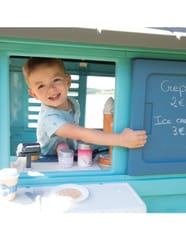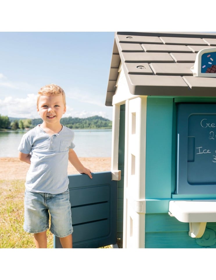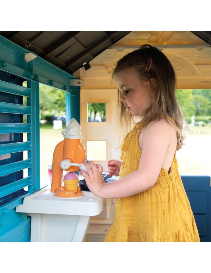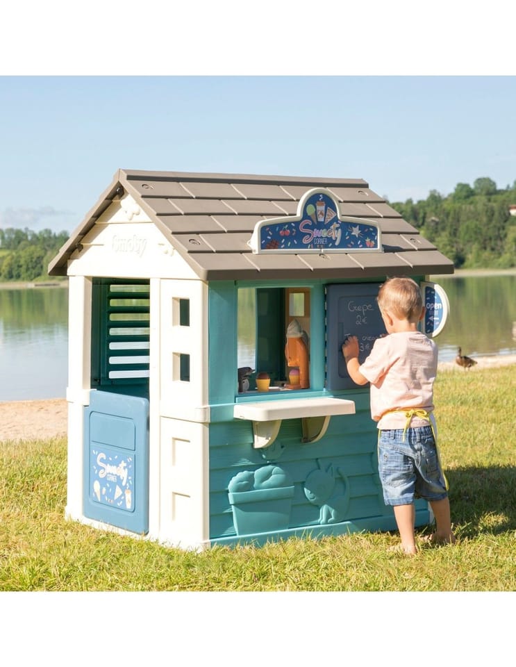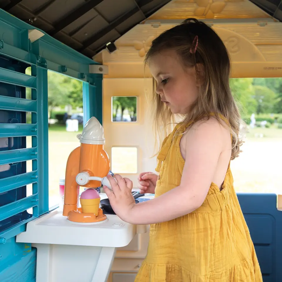 Solidny domek doskonale pasuje do ogrodu, daje możliwość dzieciom wyobrażenia sobie wielu historii. Dzięki dużej wewnętrznej przestrzeni, dzieci mogą zaprosić przyjaciół do wspólnej zabawy. Domek w ciekawej, wiosennej kolorystyce.