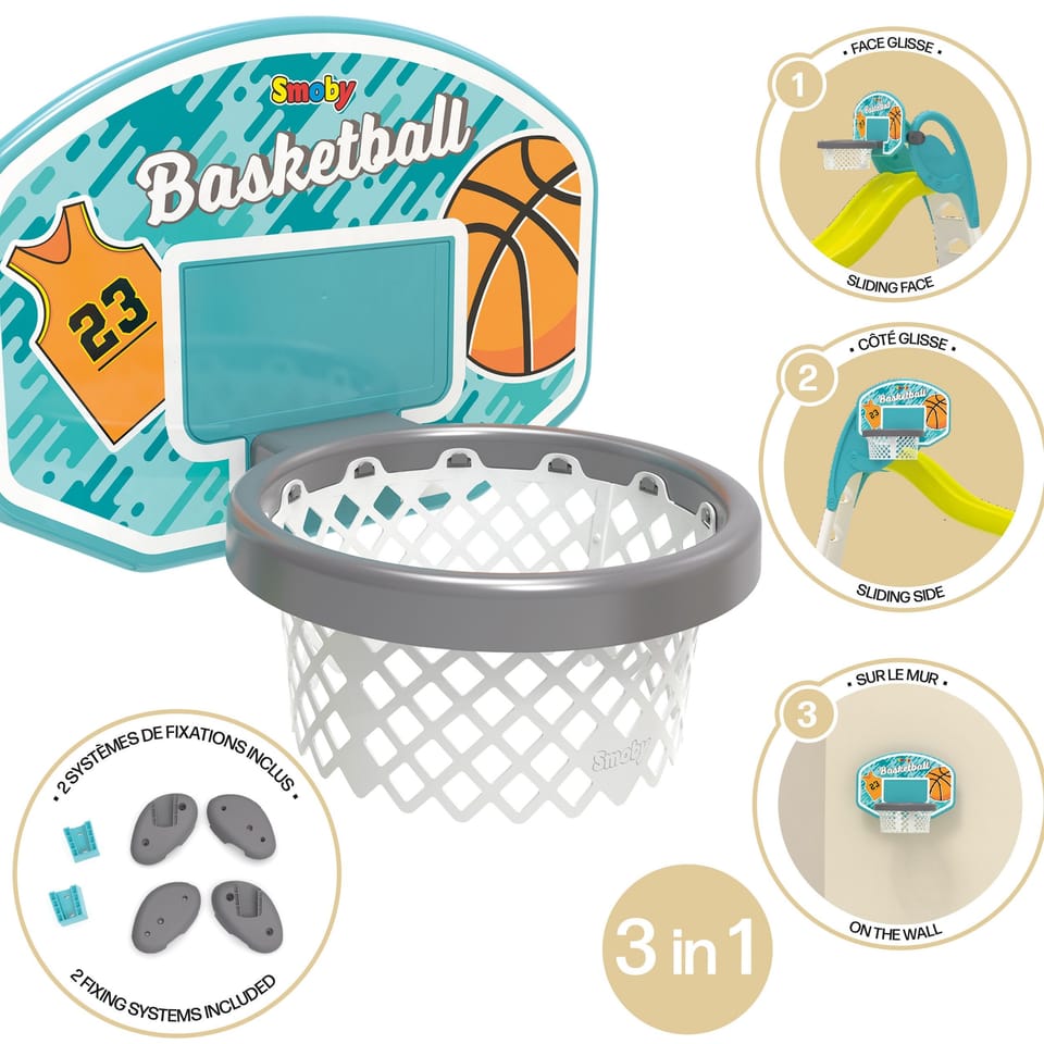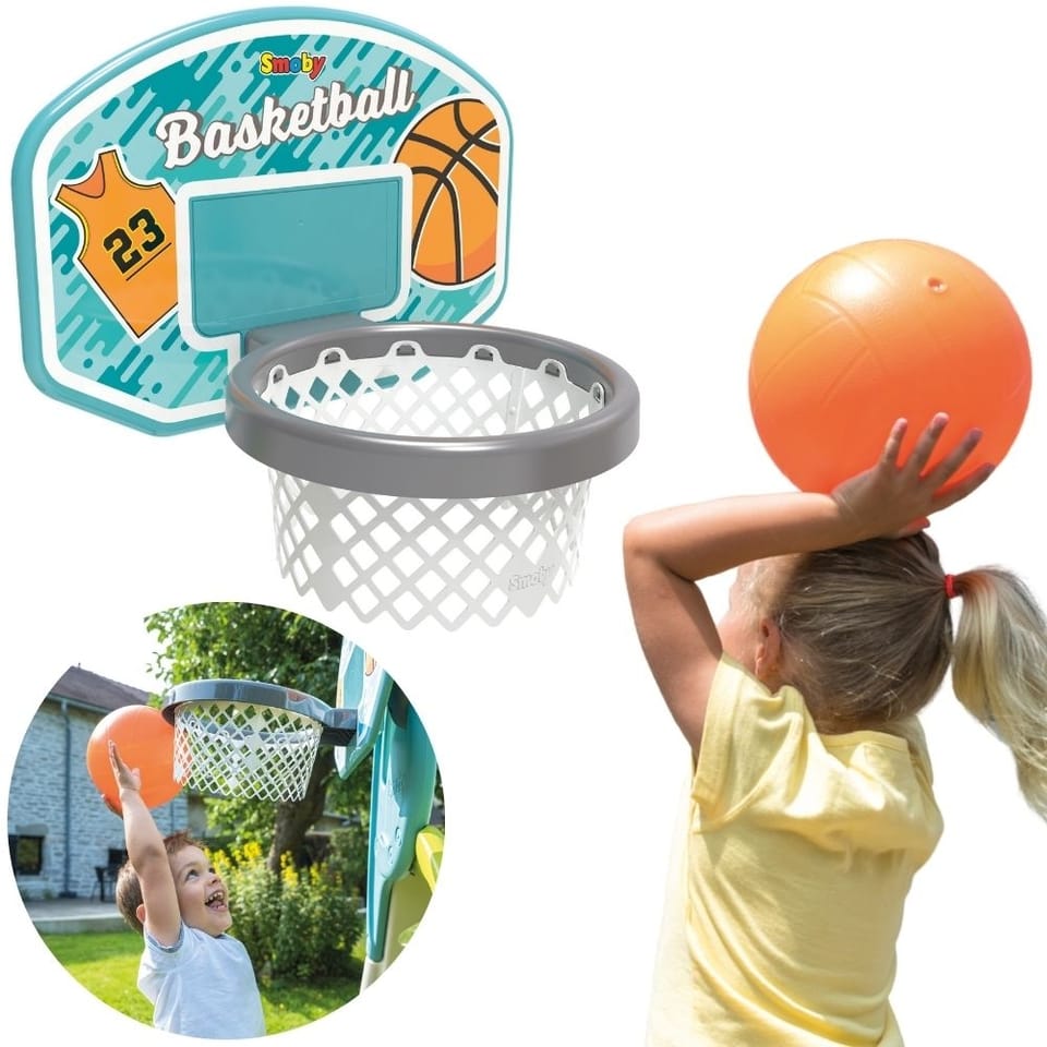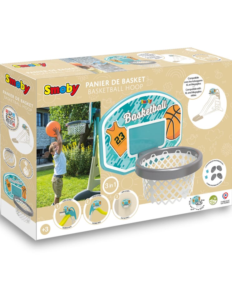 Kosz do Koszykówki od marki Smoby to sportowa zabawka dla dzieci powyżej 3 lat. Rzut piłką do kosza zapewnia wiele frajdy i stanowi świetny trening. Kosz można przymocować do zjeżdżalni Megagliss (820200), zjeżdżalni Smoby XL (820302). Możesz go umieścić zarówno na boku zjeżdżalni, jak i na jej końcu, co czyni zabawę bardziej urozmaiconą i ciekawą. Jeśli nie masz zjeżdżalni Smoby, nie ma problemu! Kosz możesz także zawiesić na ścianie. W zestawie otrzymasz elementy montażowe, niezbędne do przymocowania obręczy.