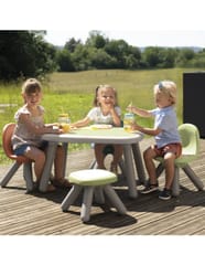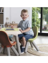 Stabilne krzesełko z oparciem z czterema nogami stanie się praktycznym i ładnym mebelkiem w dziecięcym pokoju, czy w domowym ogrodzie. W kolekcji występują różne kolory, dzięki czemu można tworzyć dowolne konfiguracje, pasujące do otoczenia.