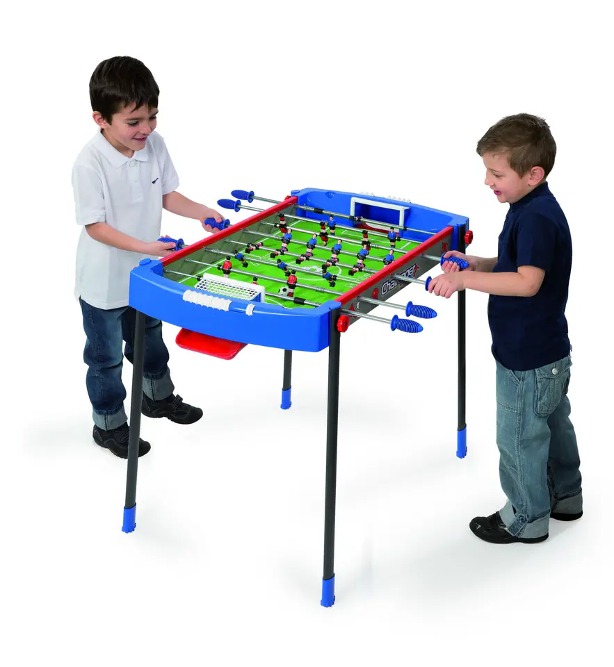Stół Piłkarzyki Challenger od cenionego francuskiego producenta zabawek dla dzieci firmy Smoby. Wysokiej klasy piłkarzyki ze stalowymi prowadnicami wyposażonymi w wygodne i całkowicie bezpieczne dzięki wbudowanym w drążki teleskopom rączki.