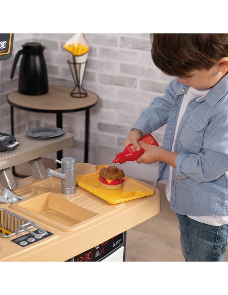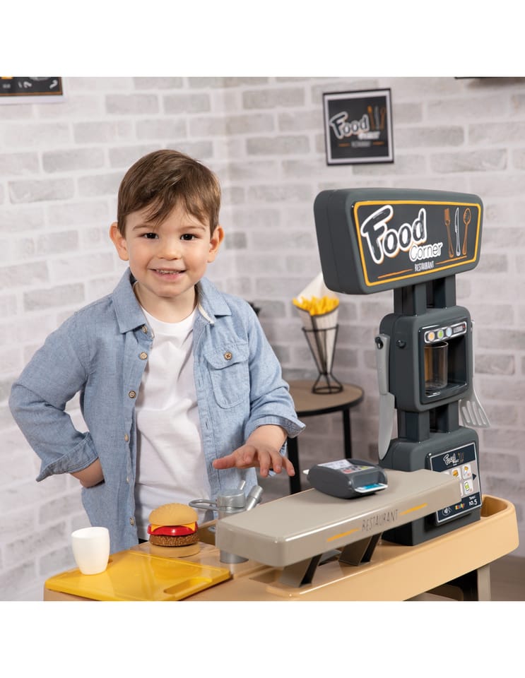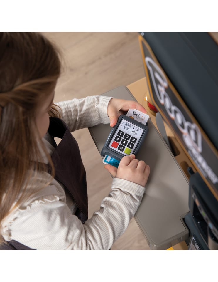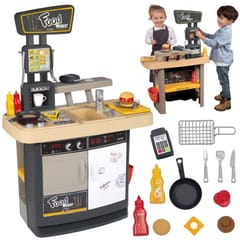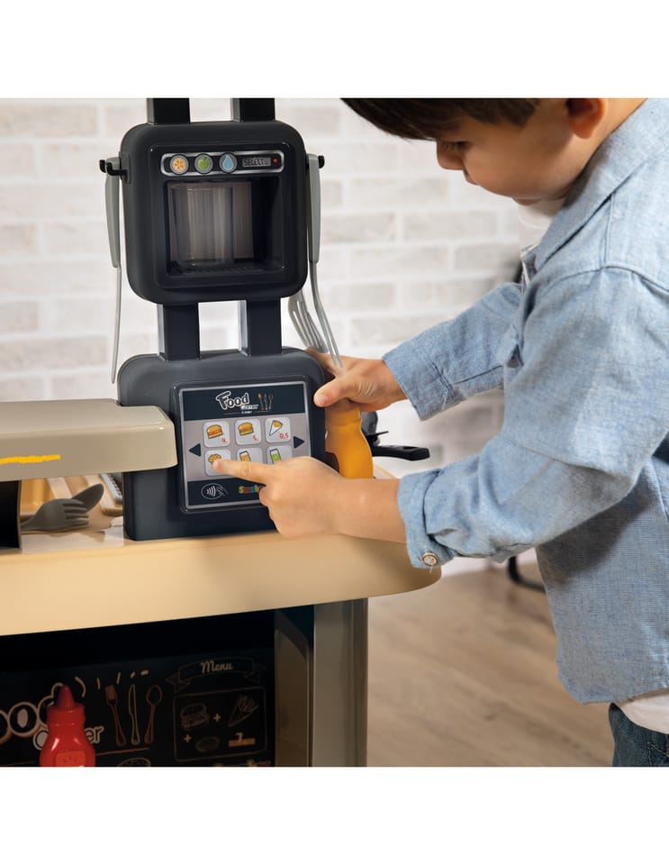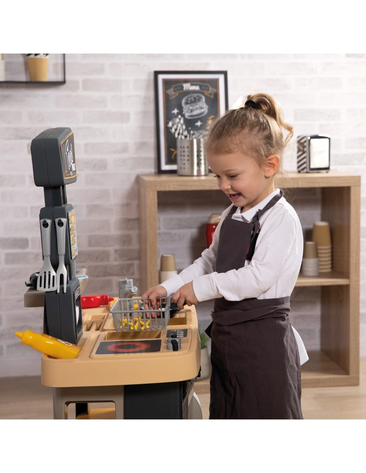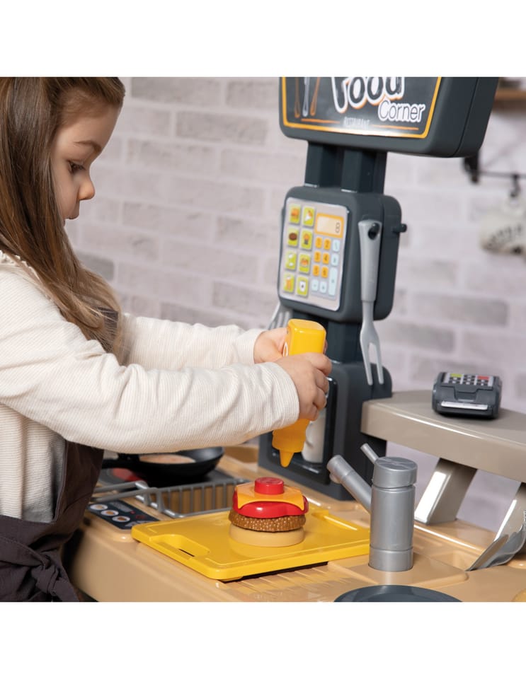 Bar Szefa Kuchni to idealny zestaw dla dzieci do zabawy i odgrywania ról. Rozwija dziecięcą wyobraźnię, uczy działania w grupie. Posiada dwie przestrzenie do zabawy - strefę przygotowywana posiłków oraz strefę obsługi klienta z kasa i terminalem płatniczym.