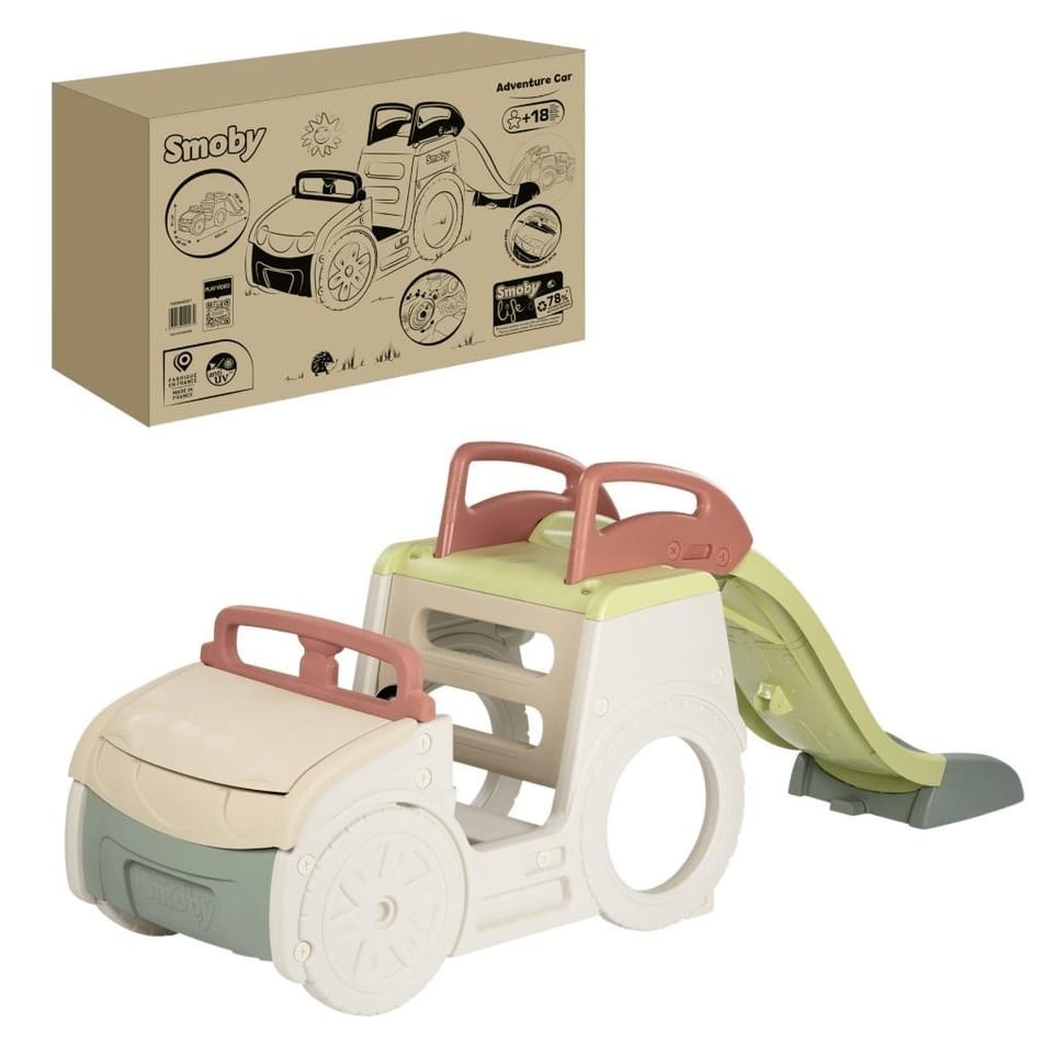 Smoby Samochód Przygód 3w1 to wyjątkowa zabawka ogrodowa, która łączy aktywną zabawę, kreatywność i rozwój fizyczny. Dzięki wytrzymałemu materiałowi i powłoce ANTI-UV, zabawka będzie cieszyć dzieci przez długi czas. Idealna do ogrodu, zapewniająca rozrywkę przez cały dzień. Samochód Przygód to idealna przestrzeń do zabawy na świeżym powietrzu dla najmłodszych! Ten wyjątkowy plac zabaw, inspirowany samochodem terenowym, przenosi dzieci w świat ekscytujących podróży i przygód.