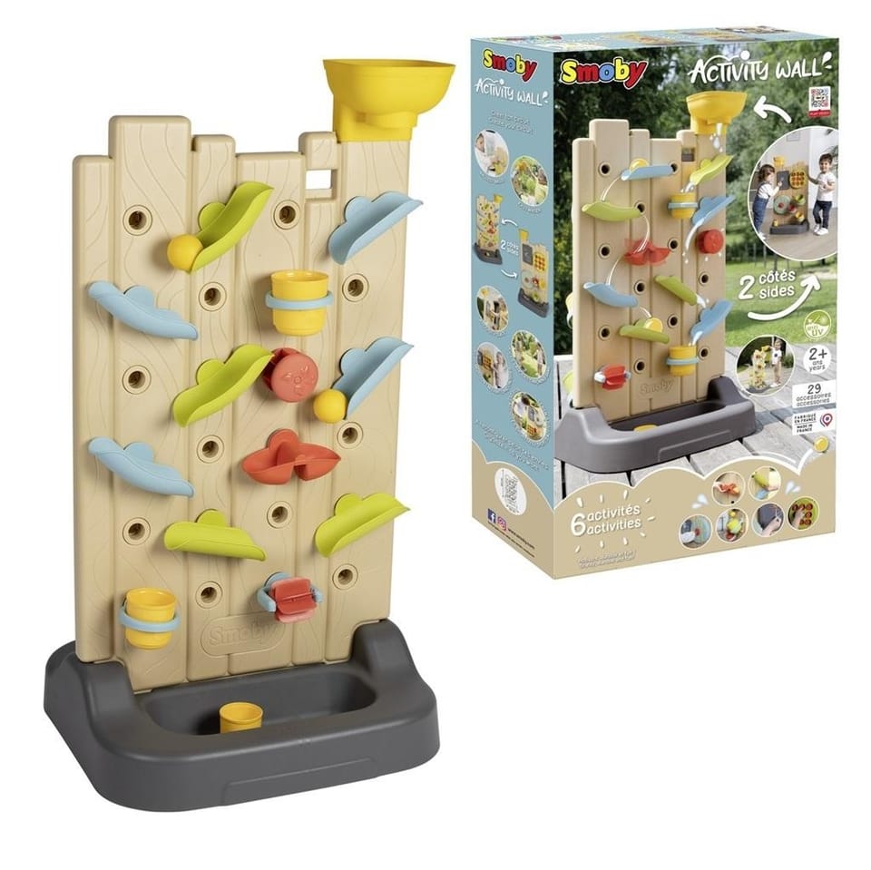 Ścianka Aktywności Dwustronna - Tablica Manipulacyjna od marki Smoby to dwustronna tablica manipulacyjna, która oferuje sześć różnych aktywności, wspierając naturalny rozwój dziecka w stylu Montessori. Z jednej strony znajduje się zestaw rynienek do eksperymentowania z wodą lub piłkami, z drugiej - gry i zabawki edukacyjne. Jest to idealna zabawka zarówno do użytku wewnątrz domu, jak i na zewnątrz.