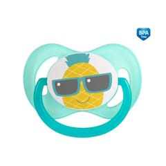 Nowy smoczek do uspokajania z kolekcji "SO COOL". Smoczki charakteryzują się unikalnym, autorskim wzornictwem oraz wykonaniem z bezpiecznych materiałów. Dodatkowo wyposażone są w wywiniętą tarczkę, która mniej odciska się na buzi dziecka - cecha potwierdzona przez 97% polożnych, które testowały smoczek. • Specjalnnie wyprofilowana tarczka - zapobiega odciskaniu się smoczka na delikatnej buzi dziecka. • Wentylowana tarczka - zapewnia swobodny przepływ powietrza, co zapobiega podrażnieniom. • Wielkość i kształt - dopasowane do indywidualnych potrzeb dziecka. • Gumka wyprodukowana z ciekłego silikonu - całkowicie przezroczysta i bezsmakowa CA 22/521TUR