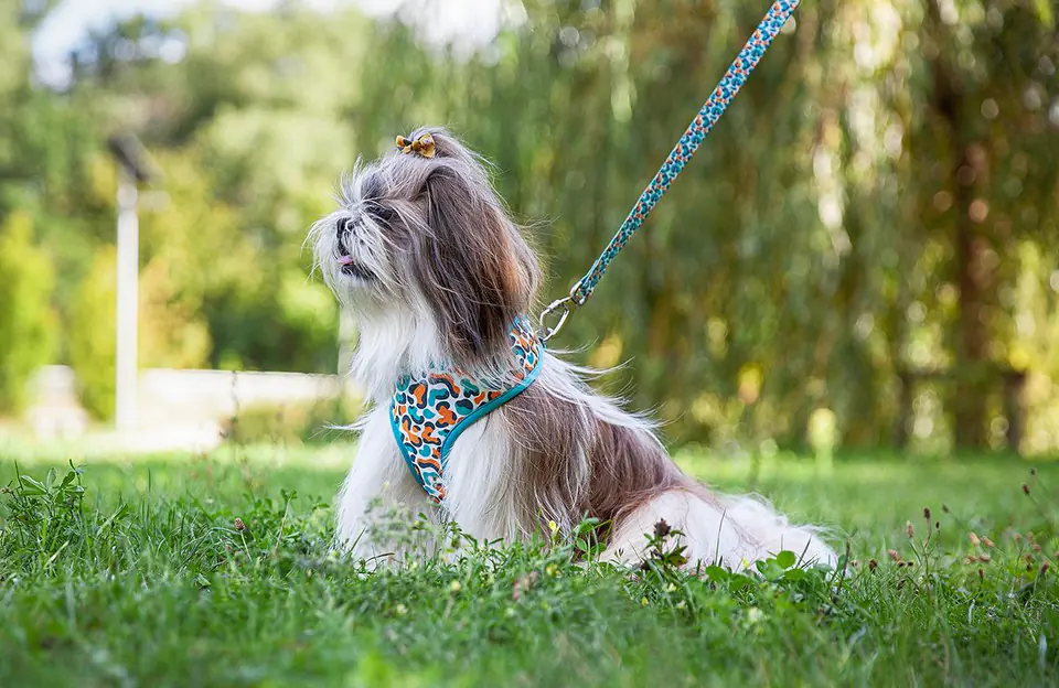 Smycz + miękkie szelki kwiaty Szelki bezuciskowe dla psów ze smyczą, dostępne w kilku wariantach barwnych. Odporne na naprężenia i urazy mechaniczne, świetnie nadają się do nauki chodzenia na smyczy dla psów ciągnących. Zalecane w profilaktyce i terapii chorób kręgosłupa szyjnego, przede wszystkim dyskopatii kręgów szyjnych. Optymalnie rozkładając nacisk na barki psa, zapobiegają powstawaniu wad postawy oraz innych dysfunkcji układu ruchu. Wchodząca w skład zestawu smycz klasyczna, umożliwia sprawną kontrolę nad psem. Wytrzymały karabińczyk oraz ergonomiczny uchwyt gwarantują komfort oraz bezpieczeństwo.