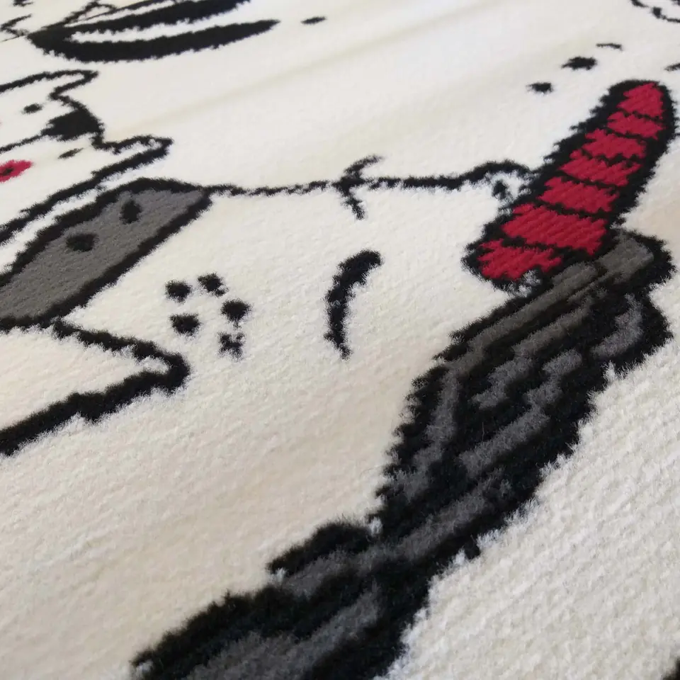 Urocza propozycja jako dekoracja do pokoju dziecięcego. Dywan kremowy Soho z motywem jednorożca pobudzi dziecięcą wyobraźnię i zachęci do wielogodzinnej zabawy. Dywan nowoczesny Soho dzięki wysokiej jakości materiałom, które zostały wykorzystane do jego produkcji, stał się produktem odpornym na wszelkiego rodzaju odkształcenia, odbarwienia oraz procesy ścierania. Będzie pełnił role dekoracyjną, ale również sprawdzi się jako izolator od zimnej podłogi. Waga - 1300g/m2.