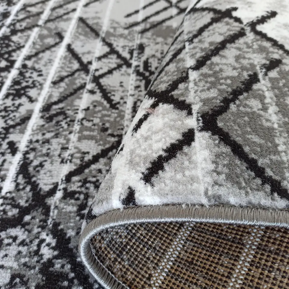 Nowoczesny dywan ze wzorem greckim utrzymany został w kolorystyce szarej, kremowej i czarnej. Świetna propozycja jako dywan do sypialni, gabinetu, czy jako dywan do salonu i pokoju młodzieżowego. Doskonale wpasuje się we wnętrza w stylu glamour czy nowoczesnym. Dywan Soho wykonany został z materiałów wysokiej jakości, które dają gwarancję odporność na odbarwienia, odkształcenia oraz procesy ścierania. Dodatkowo cechuje się również łatwością utrzymania w czystości. Waga - 1300g/m2.