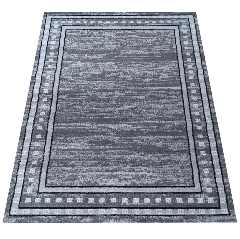 Nowoczesny dywan ze wzorem greckim utrzymany został w kolorystyce szarej, kremowej i czarnej. Świetna propozycja jako dywan do sypialni, gabinetu, czy jako dywan do salonu i pokoju młodzieżowego. Doskonale wpasuje się we wnętrza w stylu glamour czy nowoczesnym. Dywan Soho wykonany został z materiałów wysokiej jakości, które dają gwarancję odporność na odbarwienia, odkształcenia oraz procesy ścierania. Dodatkowo cechuje się również łatwością utrzymania w czystości. Waga - 1300g/m2.