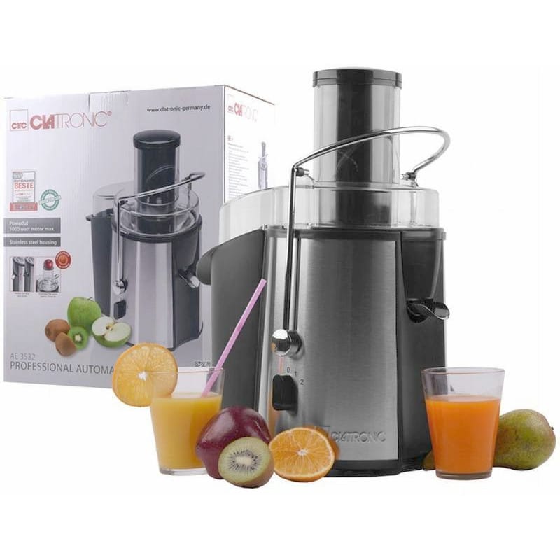 NAJWYŻSZEJ JAKOŚCIMOCNA SOKOWIRÓWKARENOMOWANEJ FIRMY CLATRONICMODEL: AE 3532Dzięki wytrzymałej obudowie wykonanej ze stali szlachetnej produkt ten idealnie nadaje się do codziennego stosowania i komponowania napojów w domu bądź pracy.Odpowiednia szybkość sprawia, że wyciskane warzywa czy owoce nie tracą wartości odżywczych a specjalna konstrukcja pozwala uzyskać nawet do 30 % więcej soku.Sokowirówka to wielofunkcyjne urządzenie pomocne w każdej kuchni. Dzięki dużej mocy 1000W oraz komplecie wszystkich potrzebnych elementów sprawdzi się podczas przygotowywania soków owocowych lub też soków z warzyw.Idealne urządzenie o nieskończonych możliwościach!Sokowirówka Clatronic to wysokoobrotowa sokowirówka za pomocą, której wydobędziesz naturalny smak i wartości odżywcze z ulubionych warzyw i owoców. Urządzenie pozwala uzyskać maksymalnie dużo soku przy minimalnej ilości pozostałego miąższu.Urządzenie zostało wyposażone w wysoko wydajny silnik z zabezpieczeniem przed nieprawidłowym montażem akcesoriów. Sokowirówka dzięki dużej mocy pozwala na szybkie i łatwe przygotowanie soku.Mocna, trwała i energooszczędna. Cechuje się niesamowitą skutecznością oraz wytrzymałością. Zastosowanie silnika nowej generacji gwarantuje skuteczną pracę urządzeniem przy mniejszym zużyciu energii.Obudowa oraz sito wykonane jest z wysokiej jakości stali nierdzewnej.Clatronic AE 3532 to sokowirówka wysokoobrotowa o mocy aż 1000 W. Urządzenie pozwala na przygotowanie soków z owoców i warzyw, dzięki czemu pomaga zadbać o zdrowie twoje jak i rodziny.Filtrowanie odbywa się przez gęste sitko ze stali nierdzewnej, które filtruje niepożądane elementy owoców i warzyw. Dzięki temu rozwiązaniu do dzbanka trafia przefiltrowany, niespieniony i bogaty w witaminy sok.Miąższ pestki i łodygi trafiają do oddzielnego pojemnika pojemności 2 litrów. Dzięki 2-stopniowej regulacji obrotów, wyciskarka pozwala na sprawne przygotowanie dużej ilości soku. Dzięki demontowalnym elementom urządzenie jest łatwe w utrzymaniu czystości.Najważniejsze cechy sokowirówki wysokoobrotowej Clatronic AE 3532:Obudowa ze stali szlachetnejUmożliwia szybkie przygotowanie soków owocowych i warzywnych, bogatych w witaminy zapewniających dobre samopoczucie, sprawność i zdrowieMoc 1000 W30 % więcej soku i witaminDuży otwór do napełniania (O 75mm)2 poziomy prędkości (0-1-2) do rożnych twardych owocówPojemnik na miąższ (ok. 2 litry)Blokada kapania w postaci zamykanego wylotu sokuDrobne sitko ze stali szlachetnejMożliwość rozłożenia na części – szybkie i bezproblemowe czyszczenieZasilanie sieciowe: 230V~, 50 Hz Smacznie i zdrowoUmożliwia szybkie przygotowanie soków owocowych i warzywnych, bogatych w witaminy zapewniających dobre samopoczucie, sprawność i zdrowieWysoka sprawnośćBardzo mocny, 1000 W silnik o dużej żywotnościKontrola nad pracą urządzenia2 ustawienia prędkości do owoców twardych i miękkich dla optymalnego wyciskaniaWygodaUrządzenie daje możliwość rozłożenia na części, dzięki czemu jest niezwykle łatwe w utrzymaniu czystości Produkt został odznaczony certyfikatem FOCUS - TEST DEUTSCHLANDS BESTECertyfikat TEST DEUTSCHLANDS BESTE został przyznany na podstawie badań przeprowadzonych przez „Germanys best household electronics”. W ramach testu porównane zostały produkty z ponad 20 000 marek z 274 segmentów rynkowych.Celem wyróżnienia „Focus” jest wskazywanie produktów cieszących się największym uznaniem konsumentów. Certyfikat przyznany jest na podstawie badań niemieckiego rynku i potwierdza wysoką jakość produktów a także świadczy o dużym zaufaniu konsumentów i renomie marki.Wymiary sokowirówki:Wymiary (ok. szer. x wys. x gł.) i wagaUrządzenie: 300 x 400 x 220 mm; 3.85 kgOpakowanie: 335 x 405 x 216 mm; 4.05 kgslimtex