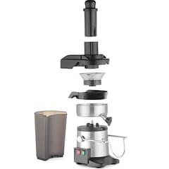 Kod produktu: 1030960Sokowirówka Compact HENDI została wyposażona w silnik o dużej prędkości, co zapewnia szybkie i efektywne wyciskanie soku. Solidna obudowa ze stali nierdzewnej gwarantuje długą żywotność urządzenia, a duży pojemnik na miąższ 4,4 l zapewnia długą, nieprzerwaną pracę. Sokowirówka została zaprojektowana z myślą o pracy w intensywnych warunkach - jej wydajność wynosi około 100 kg na godzinę.Cechy produktu: