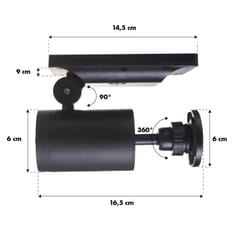 Cechy- Realistyczny wygląd – wysoka jakość użytych materiałów i dbałość o szczegóły- Wbudowany panel solarny- Migająca czerwona dioda LED- Czujnik ruchu- 8 diod LED- Do zastosowań wewnętrznych i zewnętrznych- Kolor: czarny