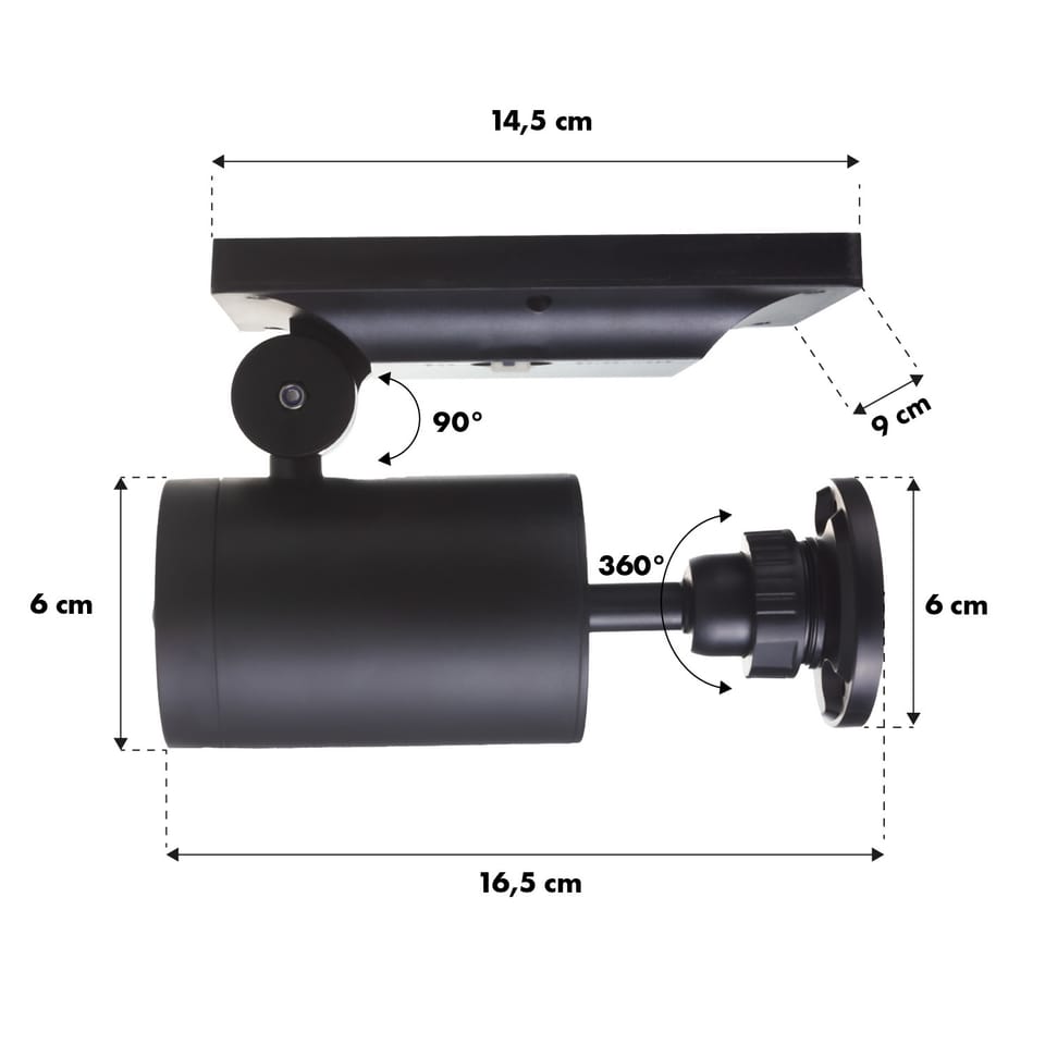 Zwiększ poziom bezpieczeństwa swojego domu lub biura z solarną atrapą kamery monitoringu. SOL1801S to bardzo wierna kopia oryginalnej kamery z imitacją diod IR i diodą świecącą na czerwono. Jej wykonanie cechuje się wysoką jakością użytych materiałów i dbałością o szczegóły. Migający element w postaci diody LED zwraca uwagę rzucając się w "oko". Główna istota takiego rozwiązania jest w pełni skuteczna w nocy bądź ciemnych pomieszczeniach.Łatwość montażu sprawia, iż szybko i bez żadnych problemów zainstalujesz atrapę na ścianie. W zestawie komplet śrub i kołków rozporowych wymaganych do montażu atrapy. Nie jest konieczne prowadzenie żadnych przewodów i kabli. Można ją stosować wewnątrz i na zewnątrz budynków. Idealne rozwiązanie na działkach, posesjach prywatnych czy w sklepach. Skutecznie odstraszy potencjalnych złodziei i wandali.
