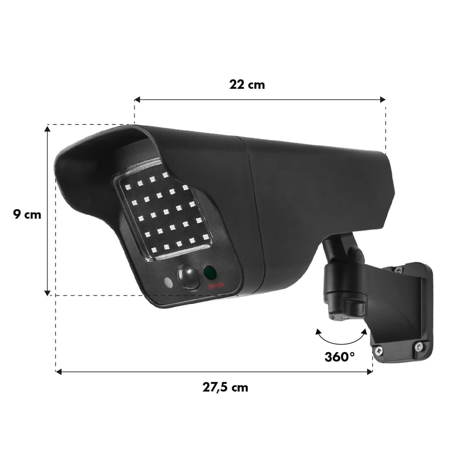 Zwiększ poziom bezpieczeństwa swojego domu lub biura z solarną atrapą kamery monitoringu. SOL1803S to bardzo wierna kopia oryginalnej kamery z diodą świecącą na czerwono. Jej wykonanie cechuje się wysoką jakością użytych materiałów i dbałością o szczegóły. Migający element w postaci diody LED zwraca uwagę rzucając się w "oko". Główna istota takiego rozwiązania jest w pełni skuteczna w nocy bądź ciemnych pomieszczeniach.Łatwość montażu sprawia, iż szybko i bez żadnych problemów zainstalujesz atrapę na ścianie. W zestawie komplet śrub i kołków rozporowych wymaganych do montażu atrapy. Nie jest konieczne prowadzenie żadnych przewodów i kabli. Można ją stosować wewnątrz i na zewnątrz budynków. Idealne rozwiązanie na działkach, posesjach prywatnych czy w sklepach. Skutecznie odstraszy potencjalnych złodziei i wandali.