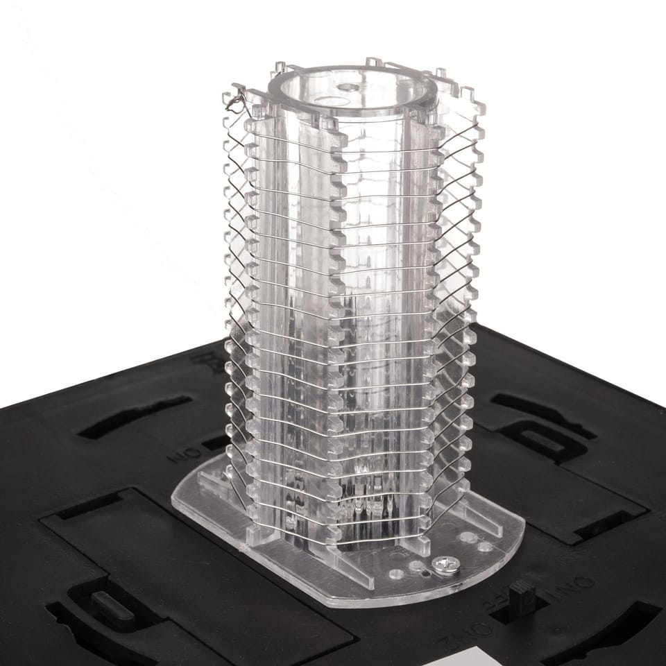 Sposób działania: lampa wabi owady przy pomocy bezpiecznego dla ludzi światła fioletowego LED/UV, po czym siateczka otaczającą źródło światła razi je prądem.