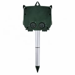 Solidna konstrukcja oraz wygodny montaż na dołączonym szpikulcu umożliwiają szybkie umieszczenie urządzenia w ziemi. Dodatkowy uchwyt montażowy pozwala także na zawieszenie odstraszacza w wybranym miejscu.