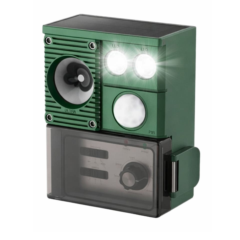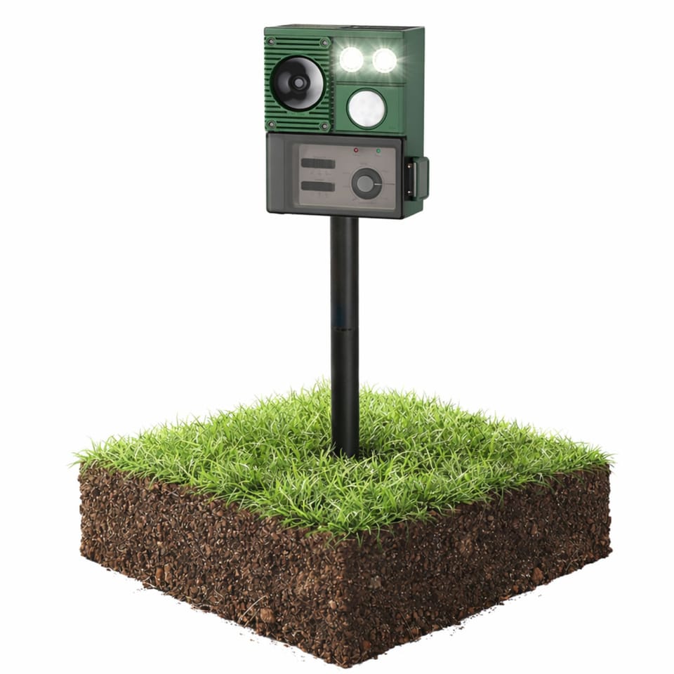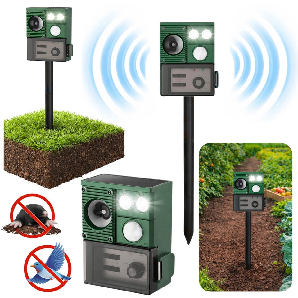 Nowoczesny solarny odstraszacz zwierząt to praktyczne i skuteczne rozwiązanie do ochrony ogrodu, działki, trawnika czy upraw przed niechcianymi gośćmi. Urządzenie zostało zaprojektowane z myślą o maksymalnej efektywności działania, wykorzystując połączenie ultradźwięków, światła LED oraz czujnika ruchu PIR. Dzięki temu odstraszacz reaguje tylko wtedy, gdy wykryje obecność zwierzęcia, co zwiększa skuteczność i jednocześnie pozwala oszczędzać energię.
