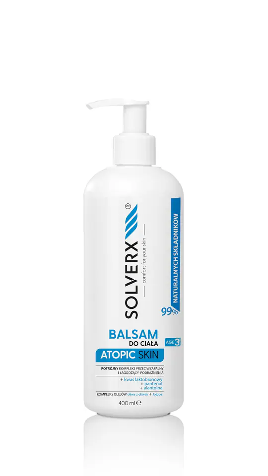 Balsam przeznaczony do skóry atopowej o potrójnym działaniu. Zastosowany w produkcie kompleks kwasu laktobionowego, alantoiny i pantenolu zmniejsza uczucie swędzenia, łagodzi podrażnienia, a także wykazuje działanie przeciwzapalne. Zastosowanie w odpowiednich proporcjach oleju jojoba, oliwy z oliwek oraz masła shea przywraca funkcję bariery hydrolipidowej skóry. Dzięki temu łagodzi uczucie ściągnięcia oraz eliminuje dyskomfort suchej skóry. Balsam bardzo łatwo rozprowadza się na skórze i jednocześnie szybko się wchłania, nie pozostawiając tłustego filmu.