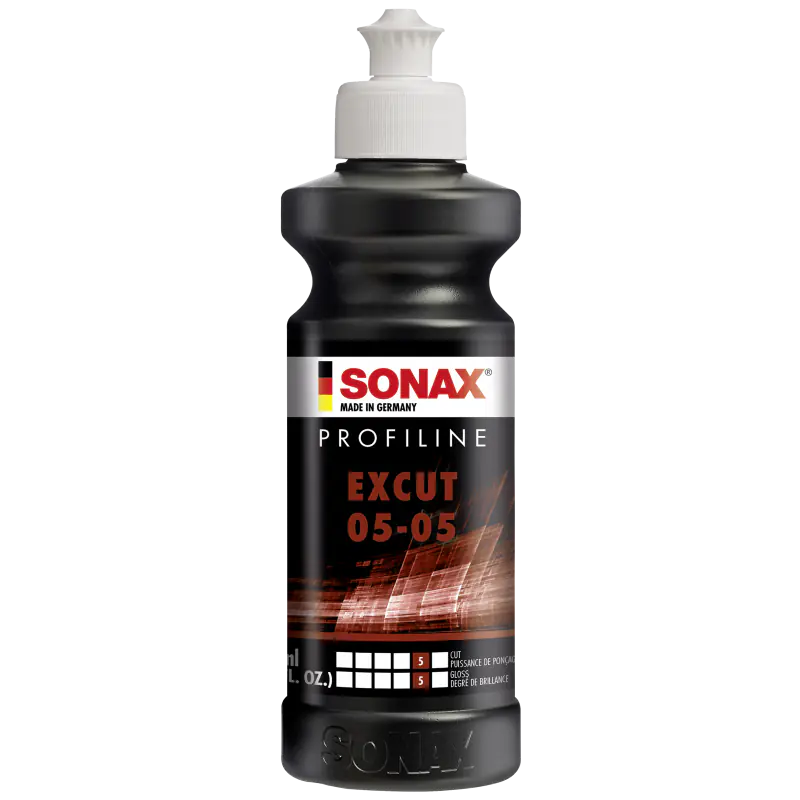 SONAX Profiline EX 05-05 - pasta polerska przeznaczona do użycia z wykorzystaniem orbitalnych maszyn polerskich. Posiada specjalną substancję ścierną. Nadaje perfekcyjny, pozbawiony hologramów połysk, optymalnie usuwa zarysowania. Niweluje zmatowienia po papierze ściernym P2000.