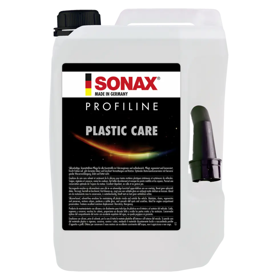 Plastic Care to produkt typu All In One do tworzyw sztucznych. Środek czyszczący na bazie silikonu do plastików zewnętrznych i wewnętrznych pojazdu. Nie zawiera rozpuszczalników. Pielęgnuje, czyści, zabezpiecza oraz przywraca kolor. Nadaje plastikom delikatny połysk, eliminuje plamy, przebarwienia i rysy. Doskonale nadaje się do plastików wewnątrz komory silnika. Posiada właściwości hydrofobowe i ochronne. Łatwy w aplikacji. Nie tłuści czyszczonych powierzchni. W rozcieńczeniu z wodą 1:3 daje efekt matowy.