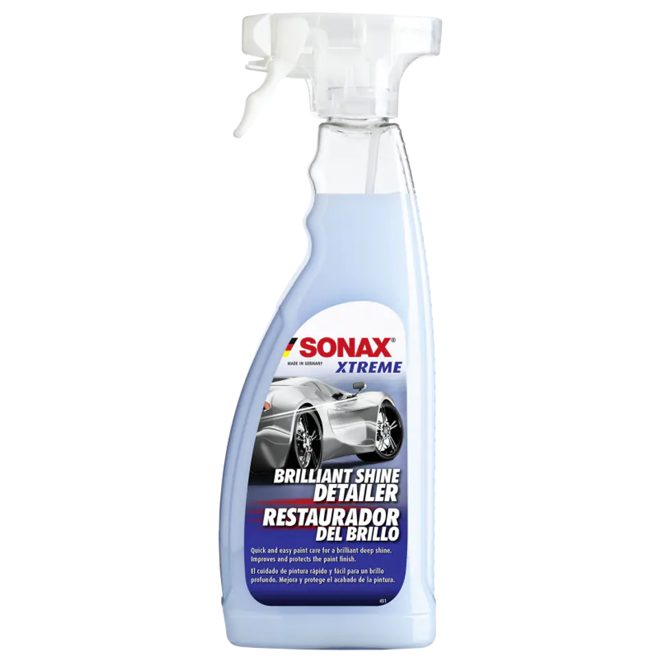 Sonax Xtreme Brillant Shine Detailer – błyskawicznie nabłyszczający wosk w płynie. Szybki wosk samochodowy Sonax delikatnie i skutecznie czyści lekko zabrudzone powierzchnie, nie pozostawiając przy tym rys. Nadaje lakierowi aksamitną gładkość i olśniewający, głęboki połysk. Dzięki niemu szybko i łatwo nadasz swemu samochodowi nowy blask oraz ożywisz kolor lakieru. Odświeża wcześniej nałożone warstwy wosku, a dzięki właściwościom odpychającym zapewnia dodatkowy efekt spływania wody.